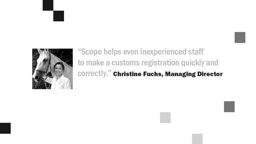 We use the Riege software for air freight exports and imports, create the necessary documents for the transportation of the animals, carry out the customs registration and clearance and even use the program for invoicing. This is all quick and easy thanks to the intuitive usage. Scope helps even inexperienced staff to make a customs registration quickly and correctly. The program reacts immediately if an incorrect entry is made. It clearly shows anyone what needs to be done to eliminate the mistake. The customs officials who are responsible for us are very satisfied with the documents we create. This is important because a horse is not a normal kind of shipment like a simple parcel. Horses are prepared for transportation on a precise day. If there is a delay of just one day, then serious problems can result or the whole process can come to a halt!